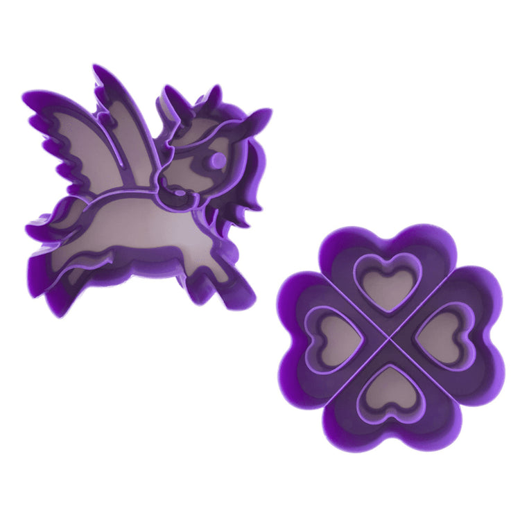 Κουπ πατ κόφτες φαγητού και ψωμιού Unicorn από την Lunch Punch. Περιλαμβάνη έναν μεγάλο κόφτη σε σχήμα μονόκερου και έναν τετραπλό κόφτη σε σχήμα καρδιάς, που δημιουργεί 4 φιγούρες.