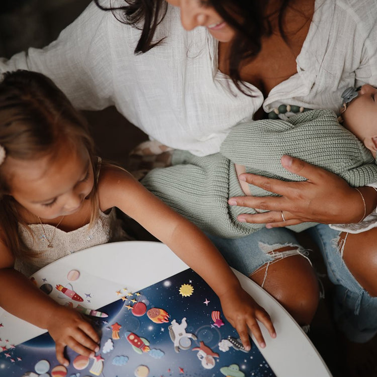 Αυτοκόλλητα φουσκωτά πολλαπλών χρήσεων από τη Mushie, συνοδευόμενα από βιβλίο αυτοκόλλητων, για τα παιδιά που λατρεύουν τον κόσμο του διαστήματος, τους αστροναύτες και τα διαστημόπλοια!