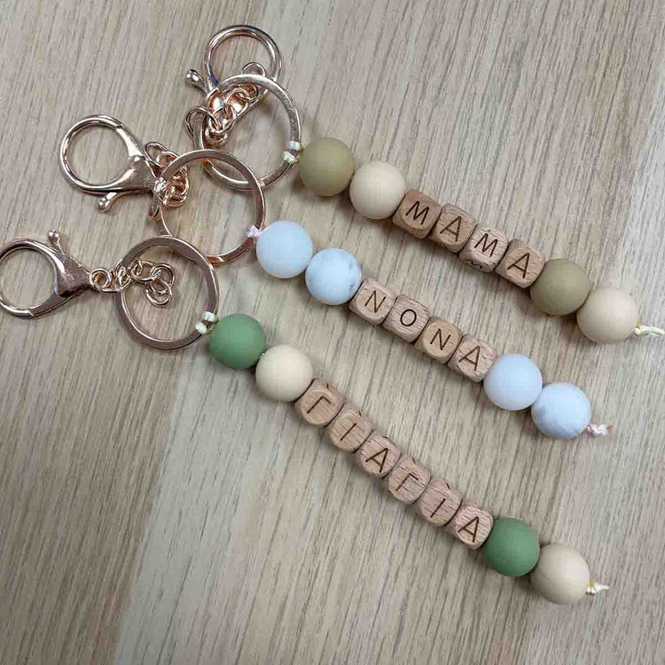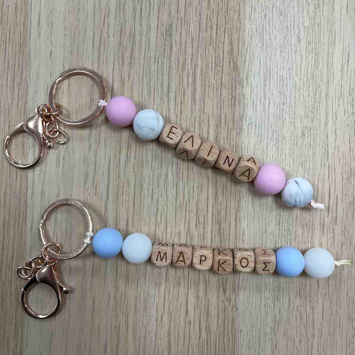 Φτιάξτε το δικό σας ξεχωριστό μπρελόκ με τα χρώματα και το στυλ σας! Διαλέξτε το όνομα που θέλετε από ξύλινες χάντρες και έως και δύο από τα δεκάδες χρώματα χάντρες. Ιδανικό και για δώρο!