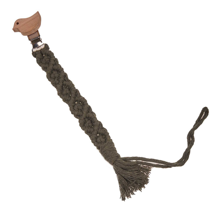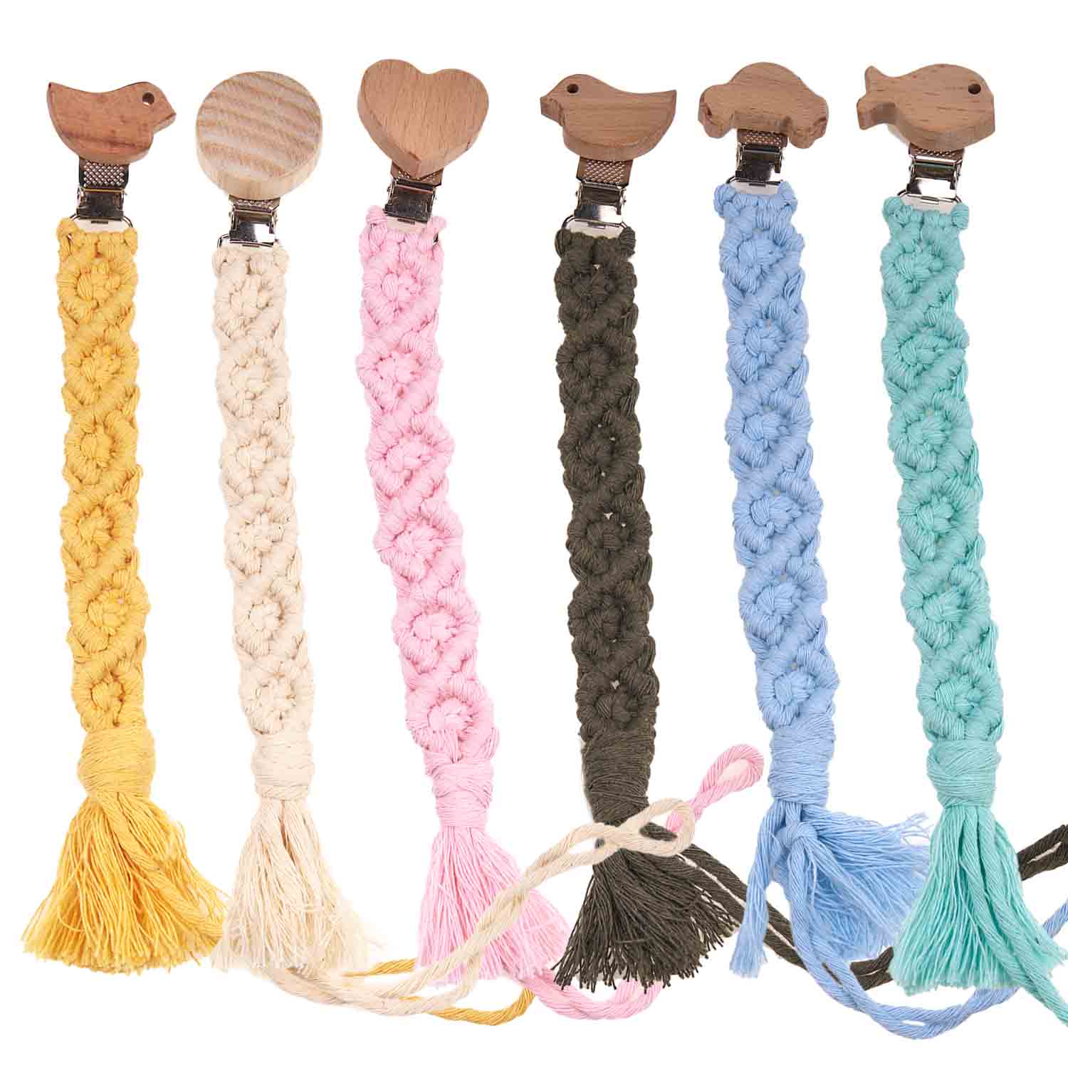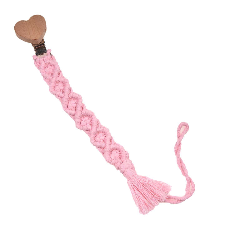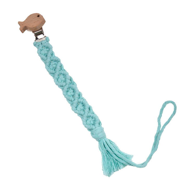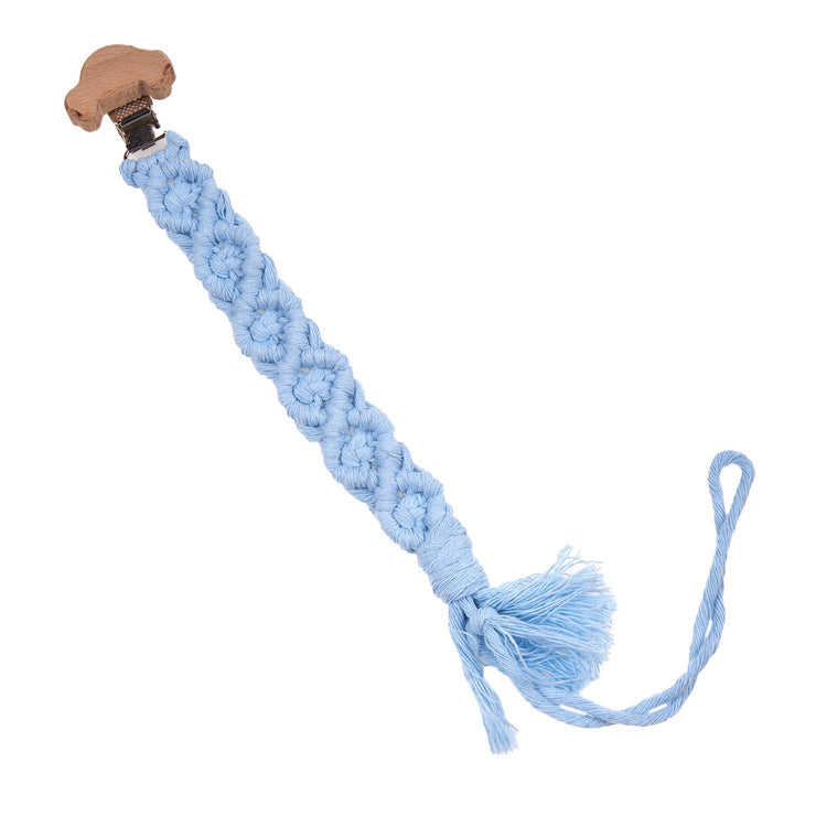 Χειροποίητο μακραμέ κλιπ πιπίλας / μασητικού. Φτιαγμένο από φυσικό βαμβακερό μαλλί, απαλλαγμένο από τοξικές βαφές, ασφαλές για το δέρμα του μωρού σας.