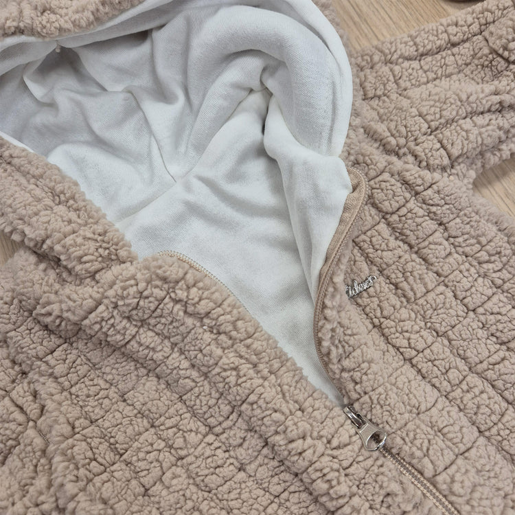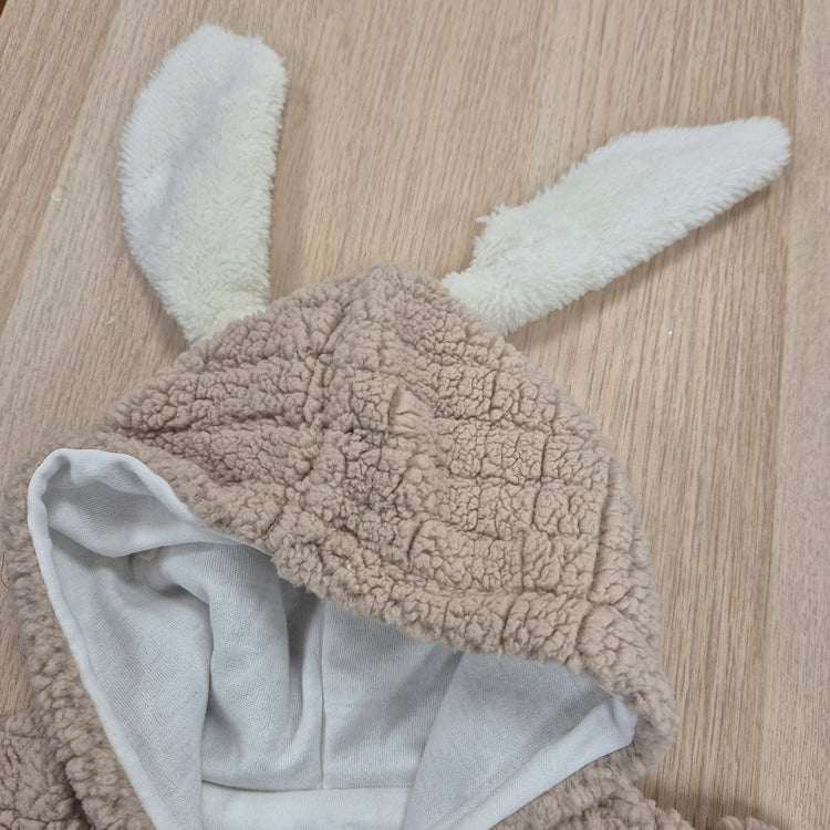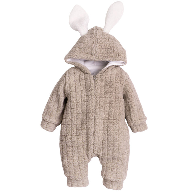 Βρεφική φόρμα εξόδου από 100% βαμβάκι. Με φερμουάρ, βαμβακερή επένδυση εσωτερικά, λάστιχο σε καρπούς και αστραγάλους, και κουκούλα με αυτάκια!